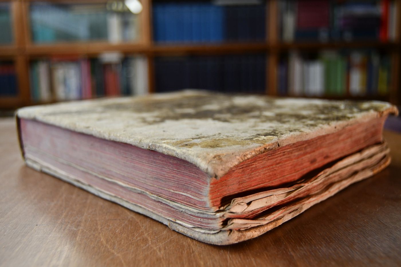 Format 21 x 25 cm, Halbleder der Zeit auf 3 Bünden mit umlaufendem Rotschnitt