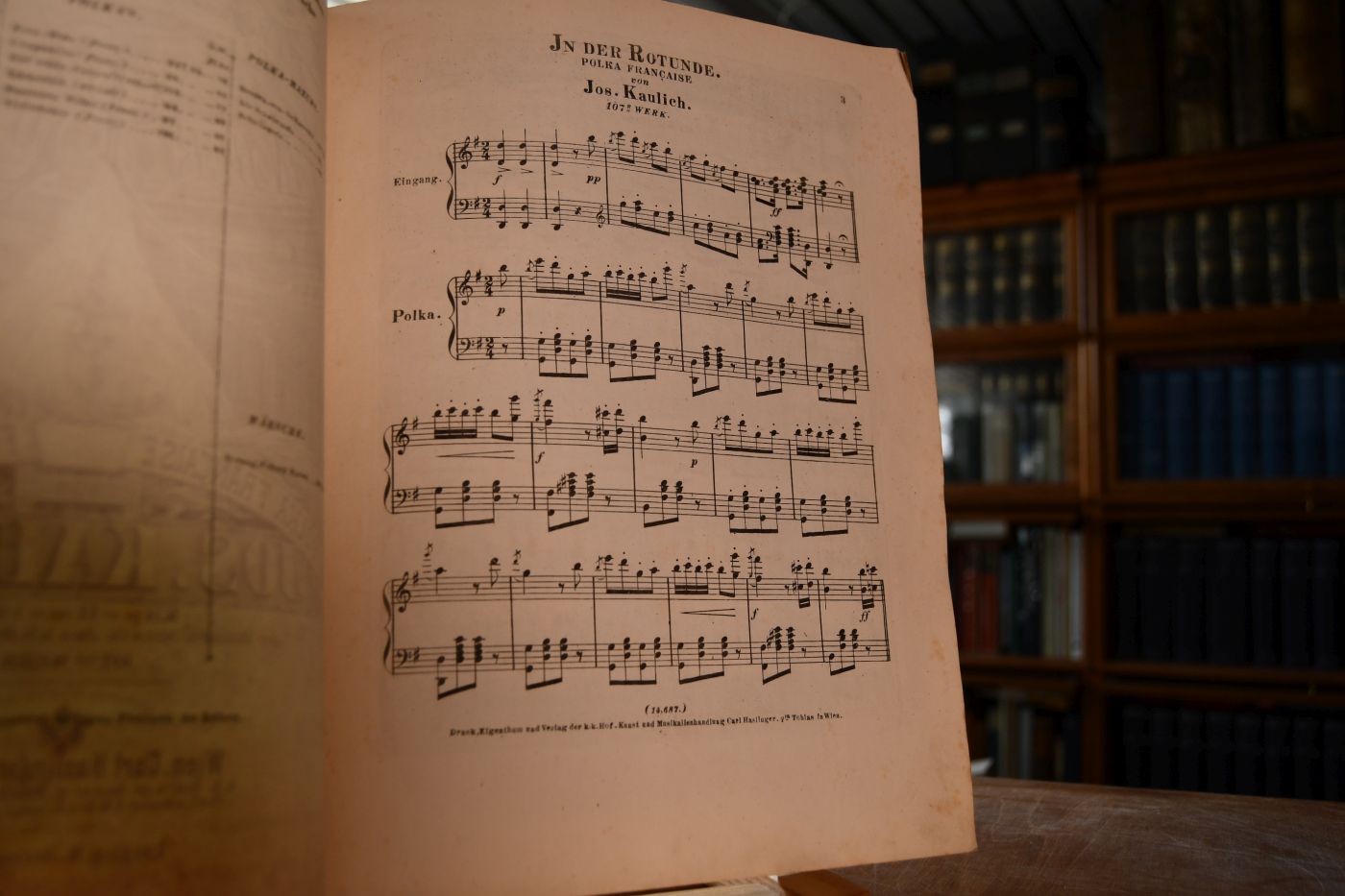 Beschreibung Einband berieben, bestoßen, angeschmutzt, fleckig und mit Einrissen. Besitzerstempel (Eduard Pfleger, Kapellmeister, WIen) auf dem Vorderdeckel.