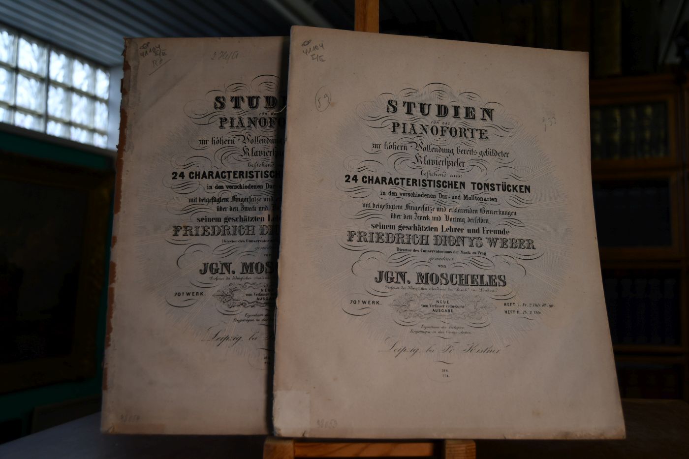 Studien für das Pianoforte zur höhern Vollendung bereits gebildeter Klavierspieler bestehend aus 24 characteristischen Tonstücken in verschiedenen Dur- und Molltonarten mit beigefügtem Fingersatze und erklärenden Bemerkungen über den Zweck und Vortrag derselben, seinem geschätzten Lehrer und Freunde Friedrich Dionys Weber gewidmet. 2 Hefte.