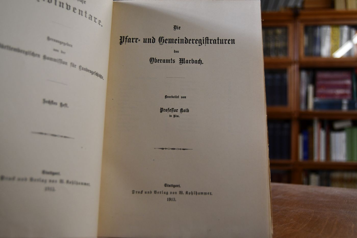 Die Pfarr- und Gemeinderegistraturen des Oberamts Marbach.Württembergische Archivinventare Sechstes Heft