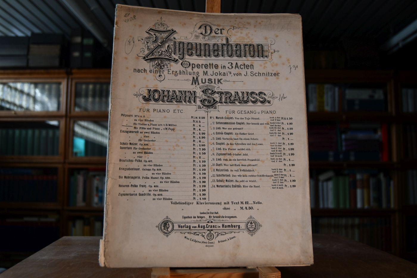 Der Zigeunerbaron. Operette in 3 Acten nach einer Erzählung M. Jokai`s, von J. Schnitzer. Potpourri No. 1 und 2 für Violine und Piano arrangiert von B. Müller.