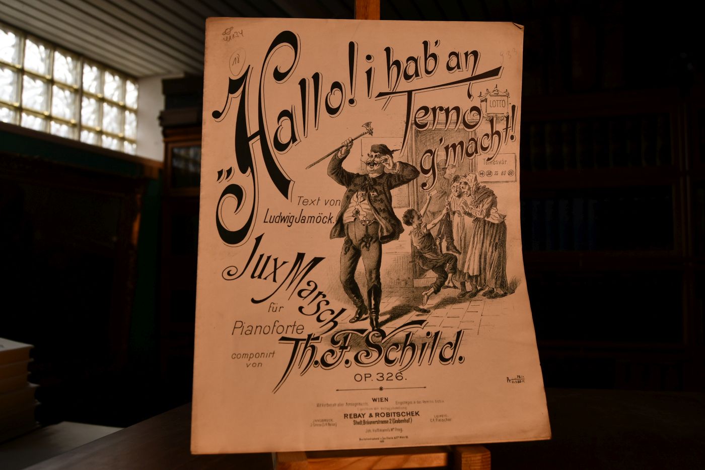Hallo! i hab` an Terno g`macht! Jux-Marsch für Pianoforte. Text von Ludwig Jamöck. Op. 326.