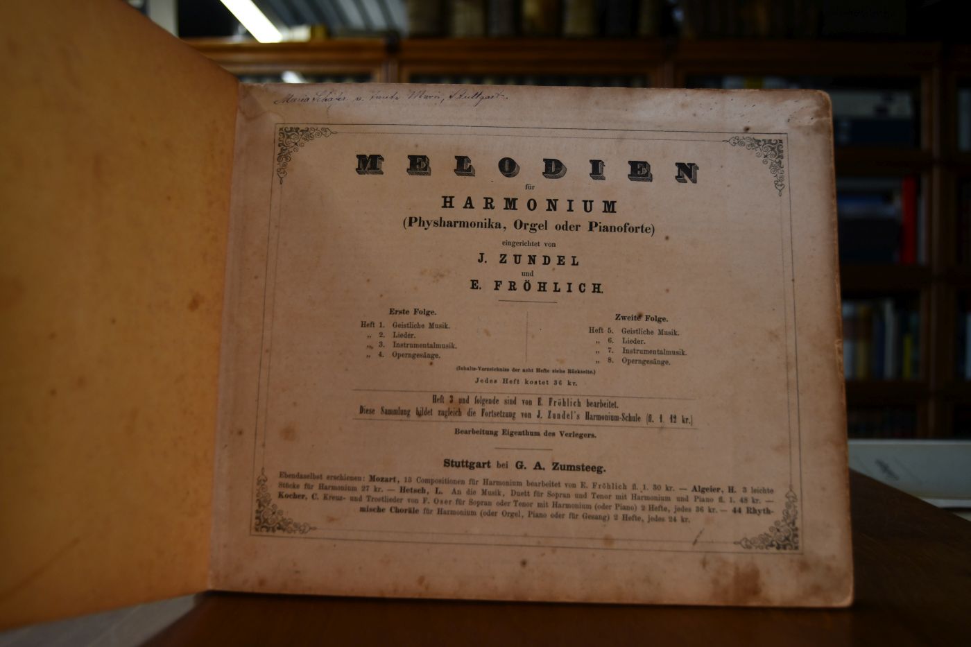 Melodien für Harmonium (Physharmonika, Orgel oder Pianoforte). 1.+2. Folge