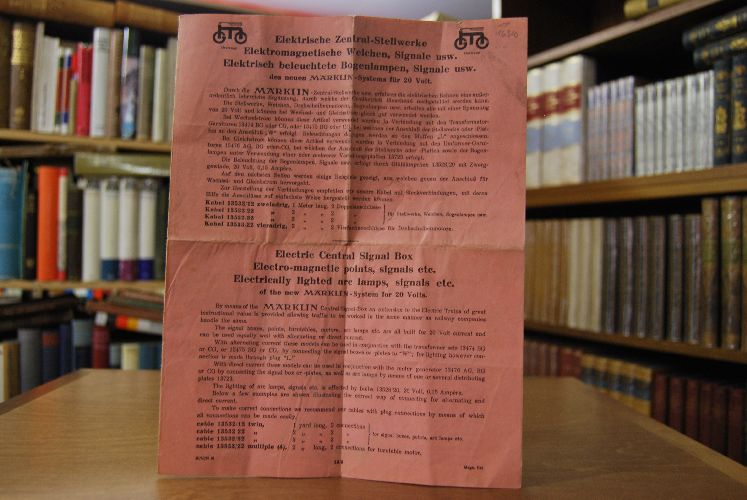 Elektrische Zentral-Stellwerke, Elektromechanische Weichen, Signale usw., Elektrisch beleuchtete Bogenlampen, Signale usw. des neuen Märklin-Systems 20 Volt.