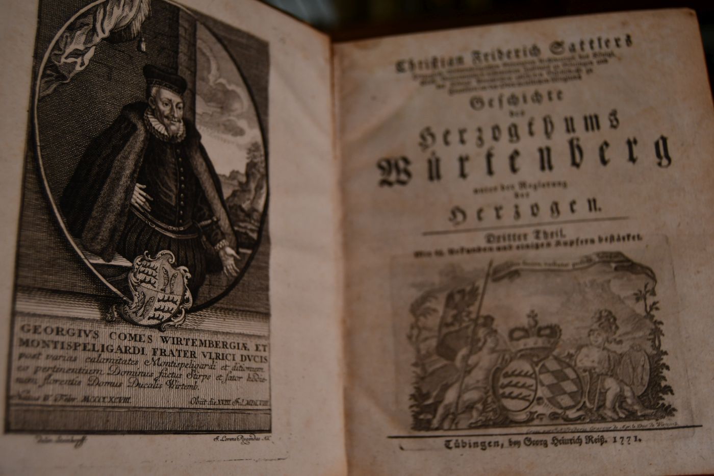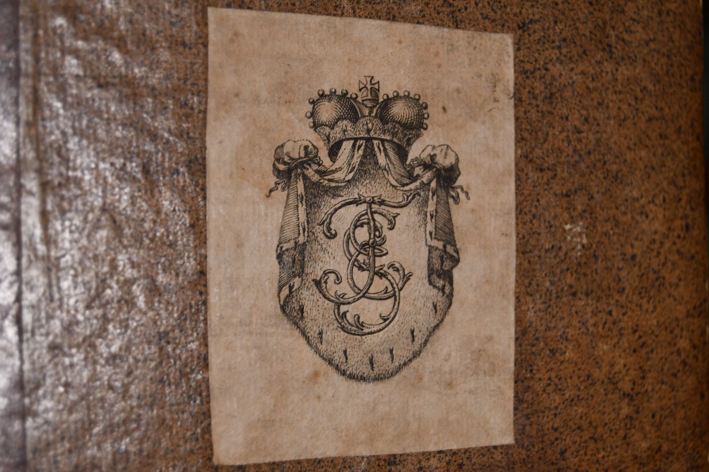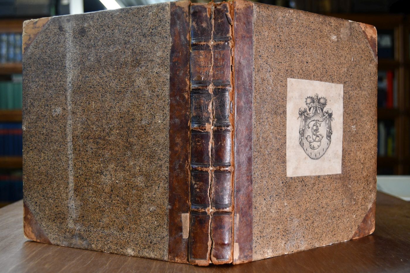 Beschreibung Einband berieben, bestoßen und am Rücken mit Einrissen. Durchgehend etwas fleckig. Falz stellenweise geöffnet. Die letzten Registerseiten lose. Auf dem Vorderdeckel das Exlibris von Elisabeth Friederike Sophie Herzogin von Württemberg der Gemahlin von Herzog Karl Eugen. Elisabeth Friedrike Sophie stiftete ihre Bibliothek der Hohen Carlsschule. Heyd I, 129.