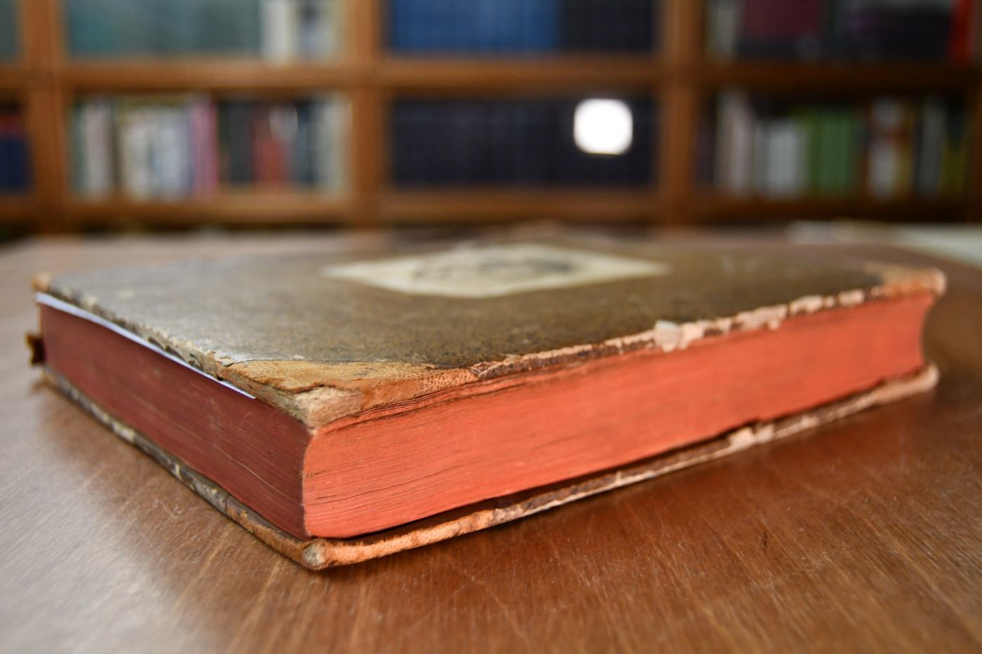 Format 22 x 19 cm, Halbleder der Zeit mit Rückenschild und umlaufendem Rotschnitt