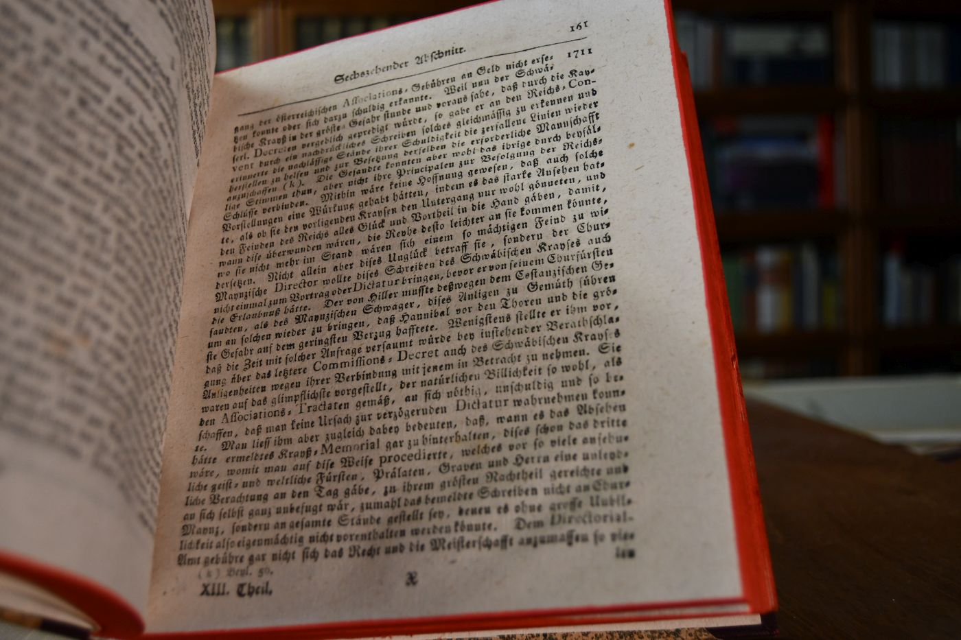 Seiten 292, 166 S. 6 Bll. mit einer Titelvignette, ohne das Porträt von Magdalena Sibylla Herzogin von Württemberg und Teck. Immer wieder fleckig.