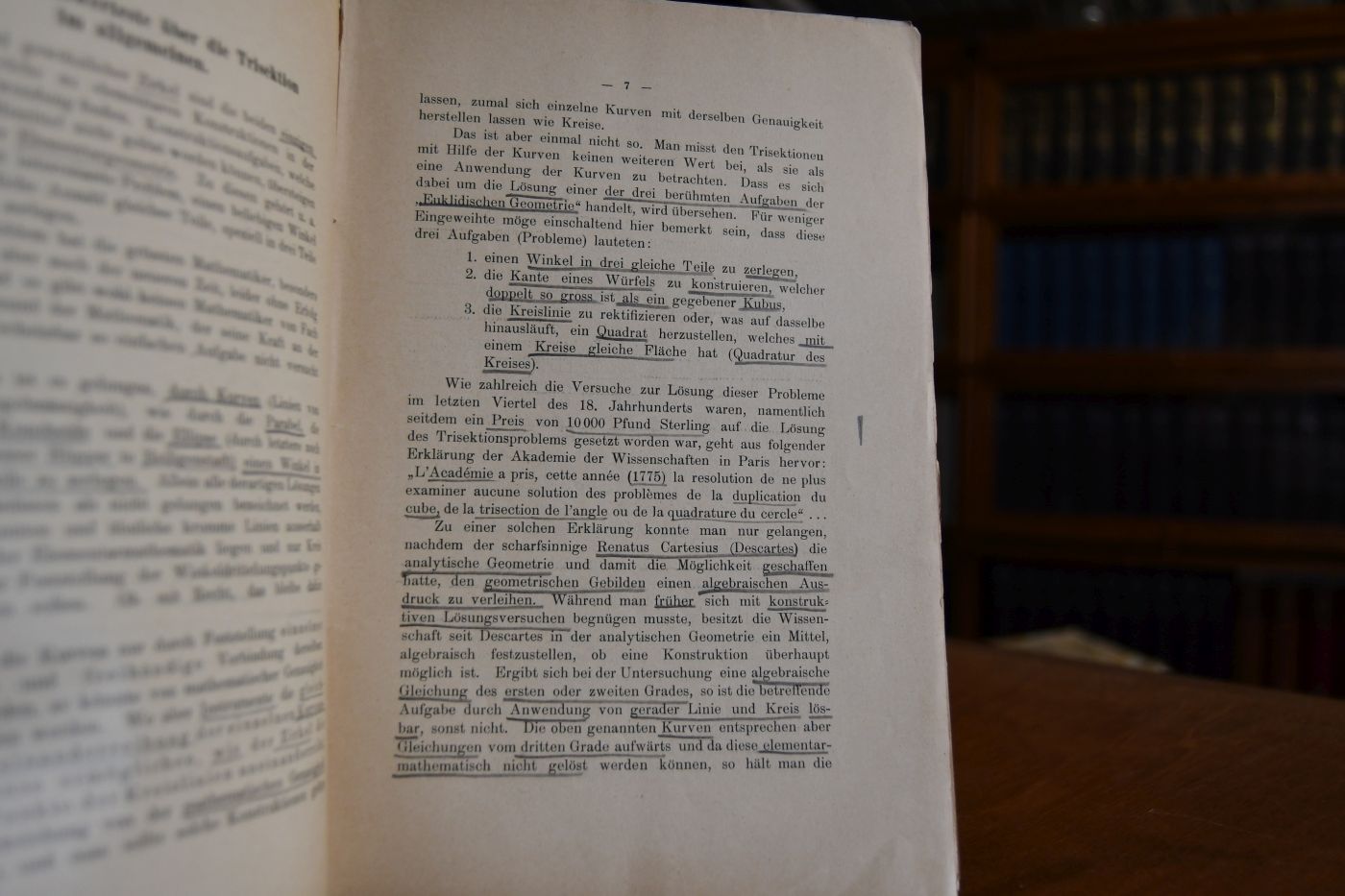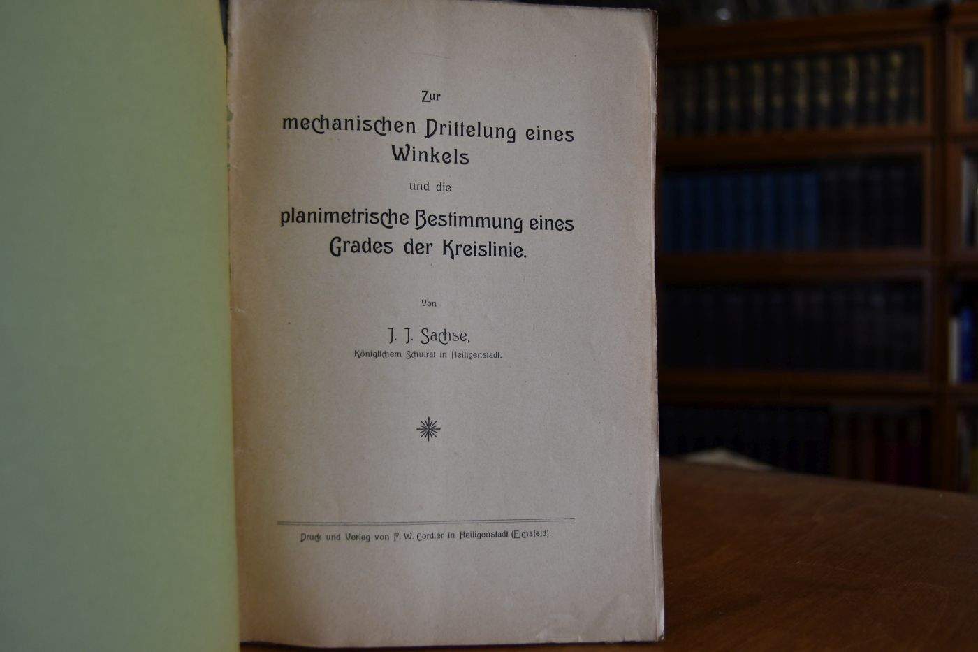 Zur mechanischen Drittelung eines Winkels und die planimetrische Bestimmung eines Grades der Kreislinie.