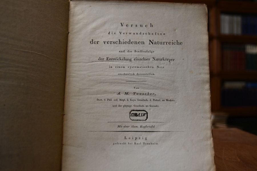 Beschreibung Einband berieben und bestoßen. Handschriftliche Angaben auf Vorderdeckel. Besitzerstempel auf Titel. Eselsohrig. Gutes Leseexemplar. "August Michael Tauscher (* 1771; † 1841) war ein deutscher Lepidopterologe, Botaniker und Philosoph. Nach einem Studium in Deutschland und Promotion zum Doktor der Philosophie, ließ sich Tauscher 1805 zunächst in Sankt Petersburg nieder, übersiedelte kurz danach nach Moskau und wurde in die dortige Moskauer Gesellschaft der Naturforscher aufgenommen, wo er seine ersten wissenschaftlichen Arbeiten veröffentlichte. Graf Alexei Kirillowitsch Rasumowski lud ihn als Mitarbeiter in den Botanischen Garten auf seinen Landsitz Gorenki ein. Tauscher leitete die zoologische Abteilung des Museums und ergänzte die Sammlungen durch Handel und Ankauf, trug aber auch selbst Ausstellungsexponate zusammen. Tauscher beschrieb auch neue Insektenarten, beispielsweise die Schmalflügelige Schilfeule Noctua maritima Tauscher, 1806, die derzeit zu Chilodes maritima (Tauscher, 1806) gestellt wird, den Trägspinner Orgyia dubia (Tauscher, 1806) und den Eulenfalter Acontia melanura (Tauscher, 1809). 1813 verließ er Russland und gab in Deutschland seine in Russland gemachten wissenschaftlichen Erfahrungen und Beobachtungen heraus. Seine Veröffentlichungen widmete er Gotthelf Fischer von Waldheim. Er schrieb auch über die Evolution, über die progressive Entwicklung der organischen Welt und betrachtete unseren Planeten als Ganzes, in Verbindung mit seiner Fauna und Flora. Er wies u. a. darauf hin, dass es in der Natur nicht nur schöpferische, sondern auch zerstörende Kräfte, die parallel nebeneinander existieren, gibt. Mit vielen seiner Thesen schien Tauscher seiner Zeit voraus zu sein, die erst rund 200 Jahre später zunehmend an Aktualität gewannen. Seine Forschungen weckten auch das Interesse Goethes, der ähnliche Überlegungen anstellte und in einem Brief vom 30. September 1817 an Tauscher am Ende schrieb: „Da diese Ihre Vorstellungsart der meinigen nicht widerstrebt, so bin ich nicht abgeneigt einen Text Ihrer Ausarbeitung eine teilnehmende Aufmerksamkeit zu widmen.“ (Wikipedia)