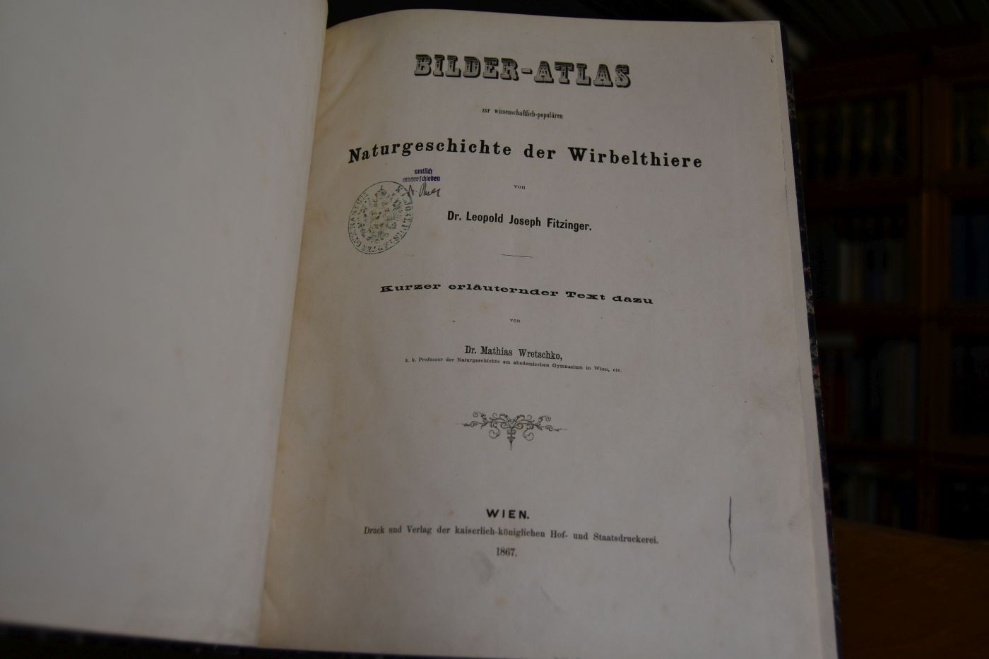 Bilder-Atlas zur wissenschaftlich-populären Naturgeschichte der Wirbelthiere von Leopold Joseph Fitzinger. Kurzer erläuternder Text dazu.