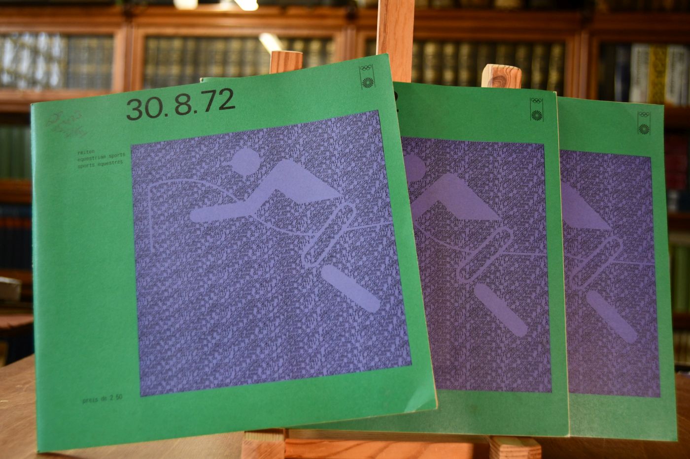 Reiten. Tagesprogramme der Reitwettkämpfe bei den Olympischen Spielen in München 1972 für den 30.8.72, 31.8.72 und 1.9.72. 3 Hefte.