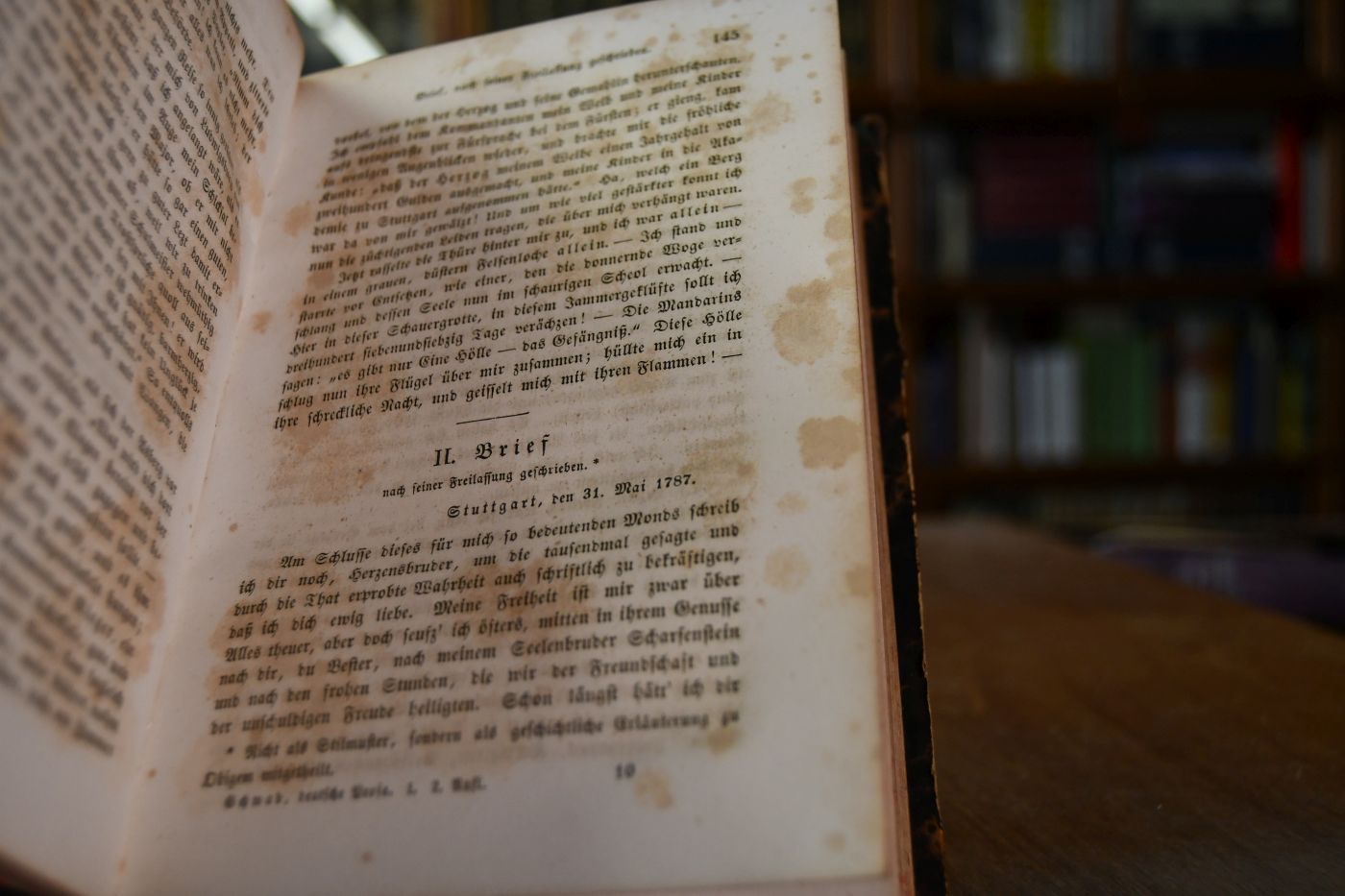Beschreibung Einband berieben, bestoßen und Rücken mit Einrissen. Besitzerstempel auf fliegendem Vorsatz. Durchgehend fleckig.