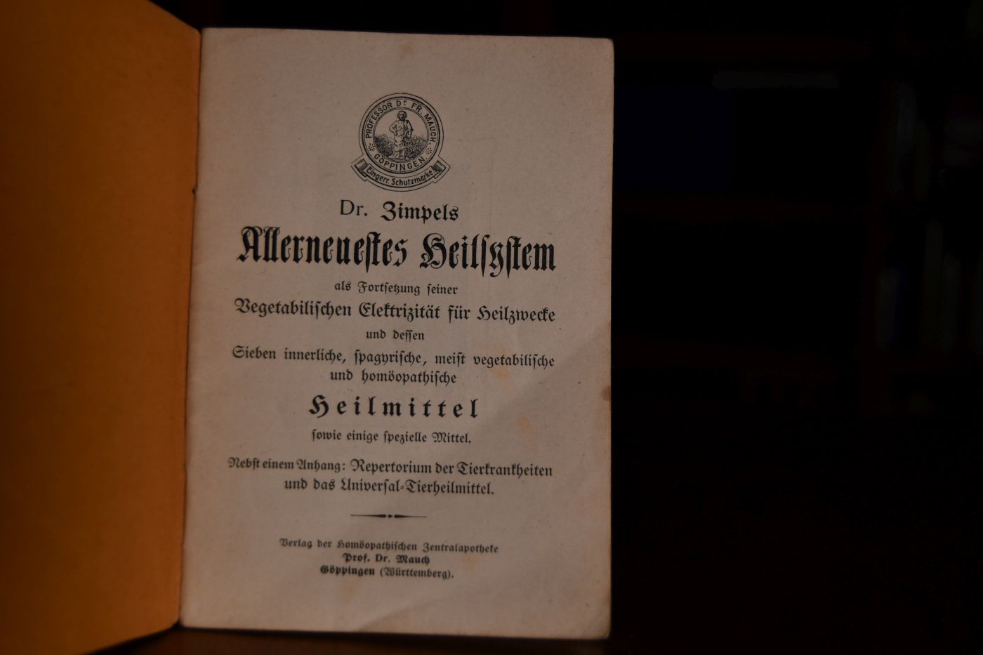 Dr. Zimpels allerneuestes Heilsystem als Fortsetzung seiner Vegetabilischen Elektrizität für Heilzwecke und dessen Sieben innerliche, spagyrische, meist vegetabilische und homöopathische Heilmittel sowie einige spezielle Mittel. Nebst einem Anhang Repertorium der Tierkrankheiten und das Universal-Thierheilmittel.