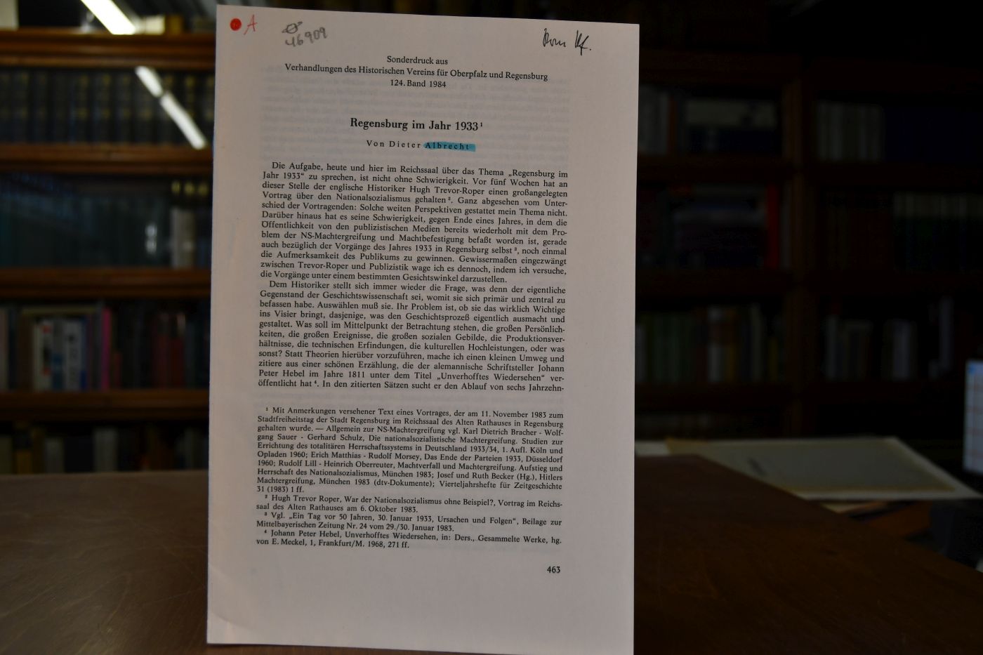 Sonderdruck aus: Verhandlungen des Historischen Vereins für Oberpfalz und Regensburg, 124. Band.