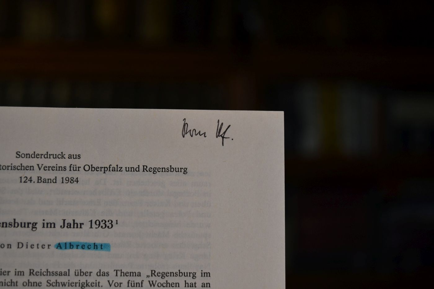 Beschreibung Berieben und bestoßen. Mit handschriftlicher Zueignung von Dieter Albrecht auf dem Deckblatt.