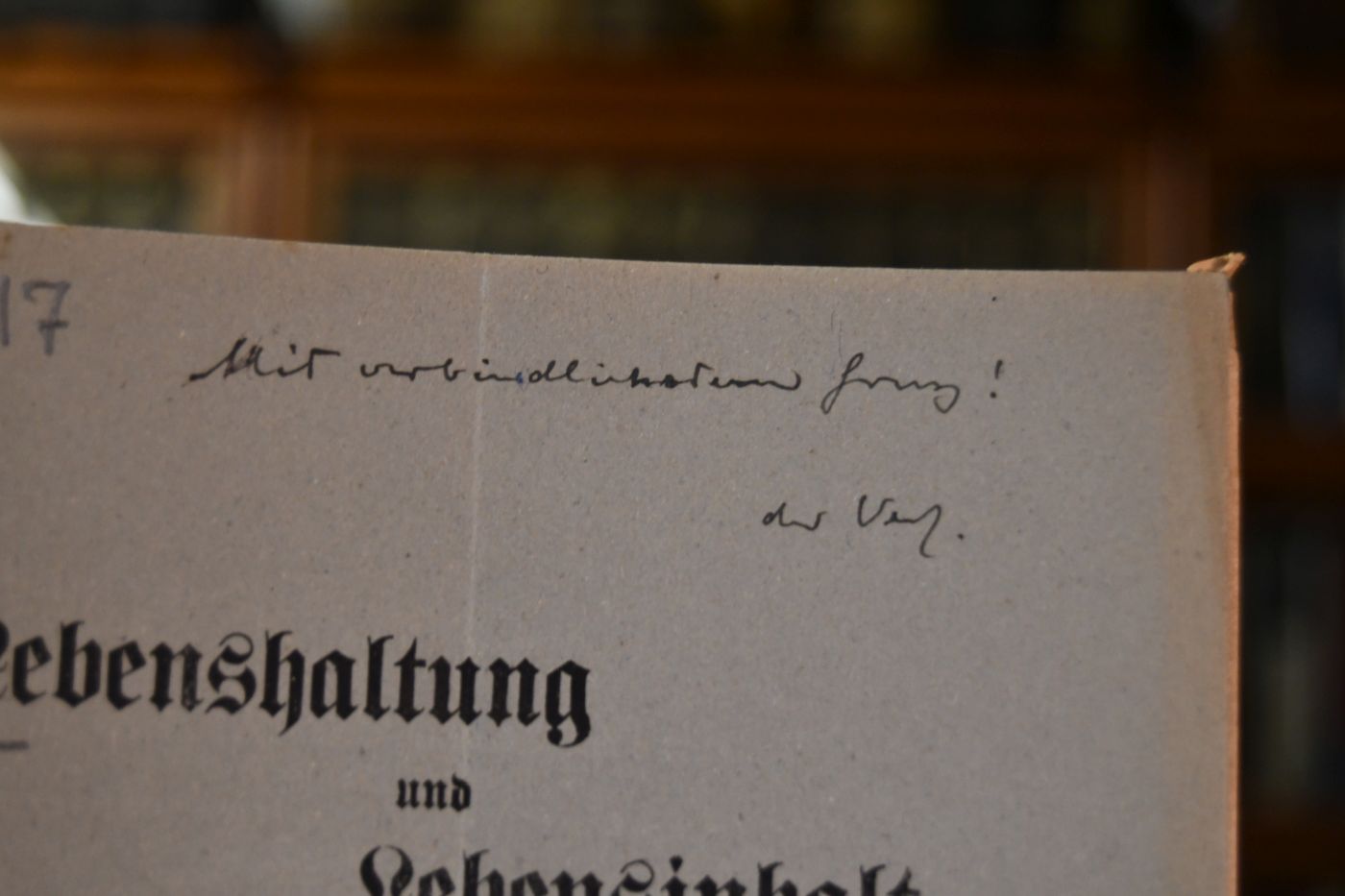 Beschreibung Einband berieben, bestoßen, gebräunt und fleckig. Durchgehender Längsfalz. Papierbedingt gebräunt. Mit handschriftlicher Widmung von Alexander Graf zu Dohna auf dem Vorderdeckel.