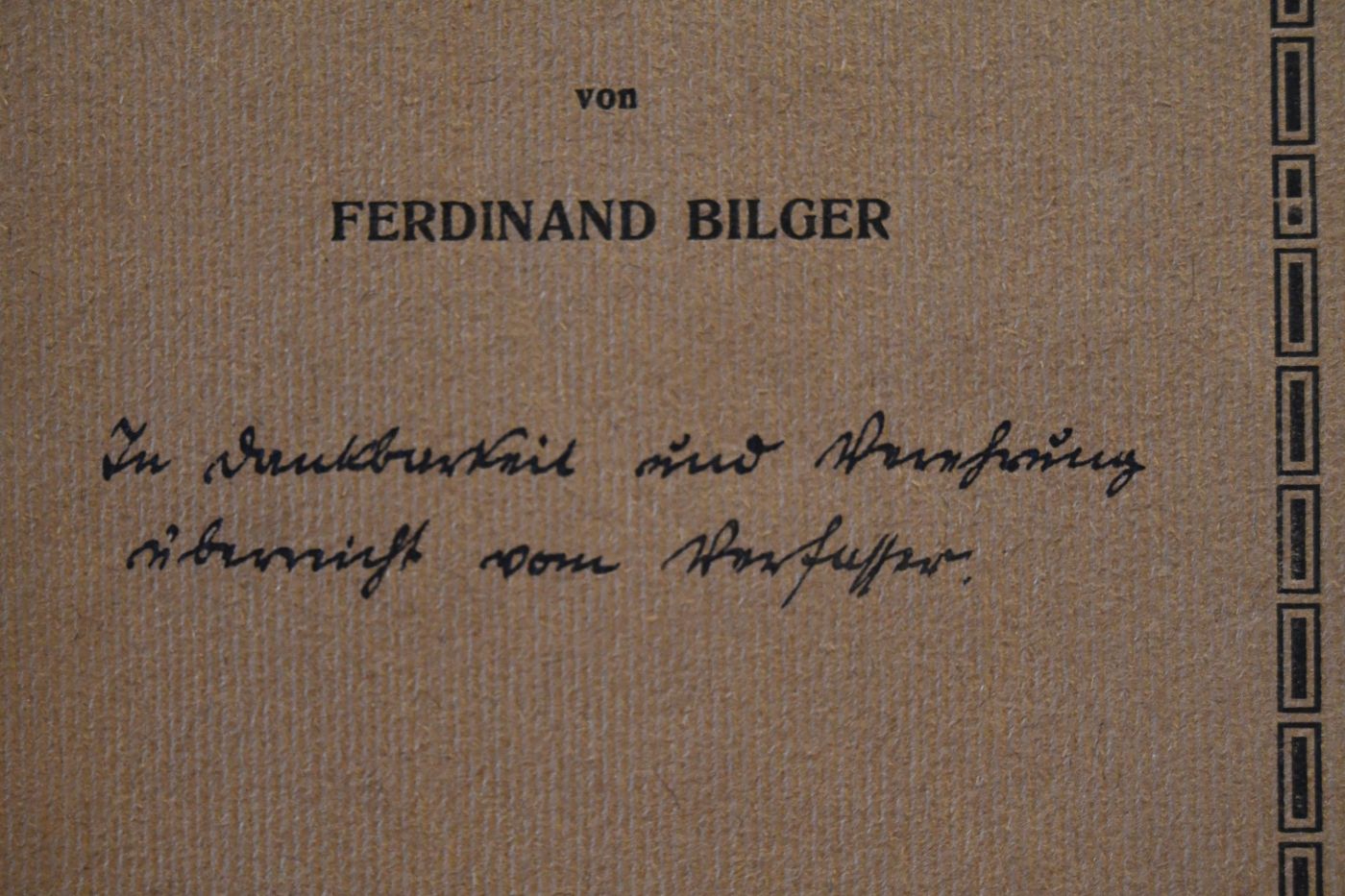 Beschreibung Einband berieben und bestoßen.Mit handschriftlicher Widmung von Ferdinand Bilger auf dem Vorderdeckel.