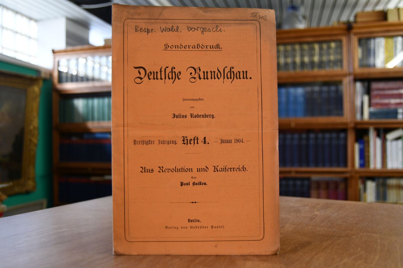 Beschreibung Einband berieben, bestoßen, angeschmutzt. Mit durchgehendem Querfalz. Mit handschriftlicher Widmung von Paul Bailleu an Adalbert Wahl auf der Rückseite des Textes.