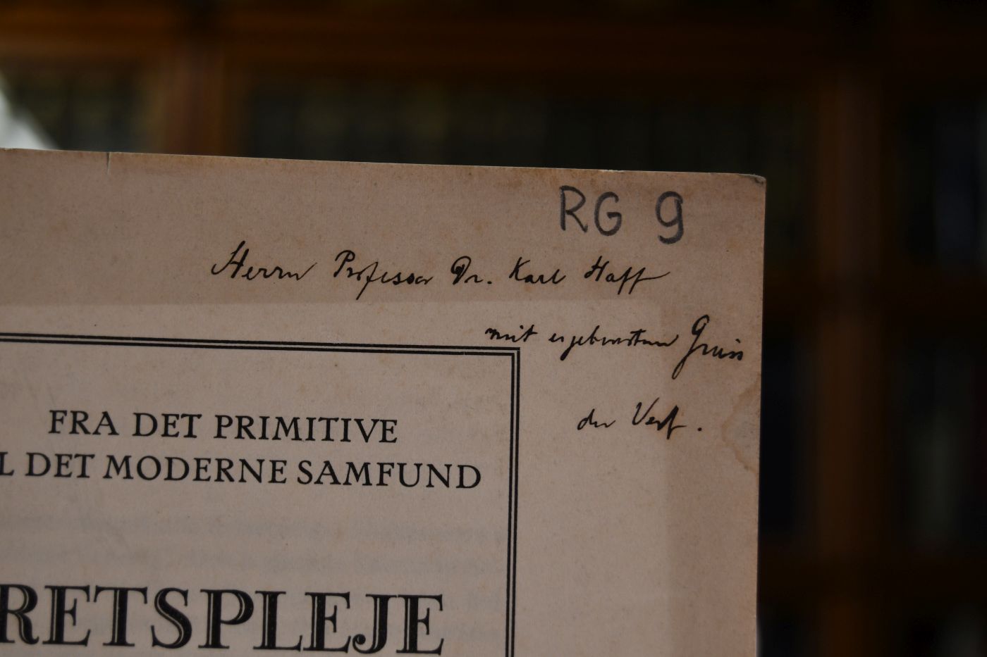 Beschreibung Einband berieben, bestoßen, angeschmutzt und mit korrodierten Heftklammern. Eselsohrig und mit Randeinrissen. Mit handschriftlicher Widmung von Frantz Dahl an Karl Haff auf dem Vorderdeckel.