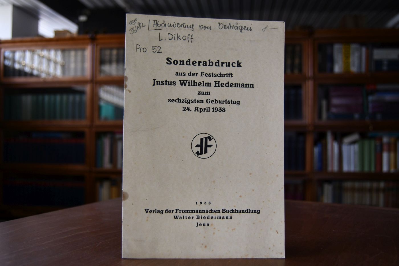 Sonderabdruck aus der Festschrift Justus WIlhelm Hedemann zum sechzigsten Geburtstag, 24. April 1938.