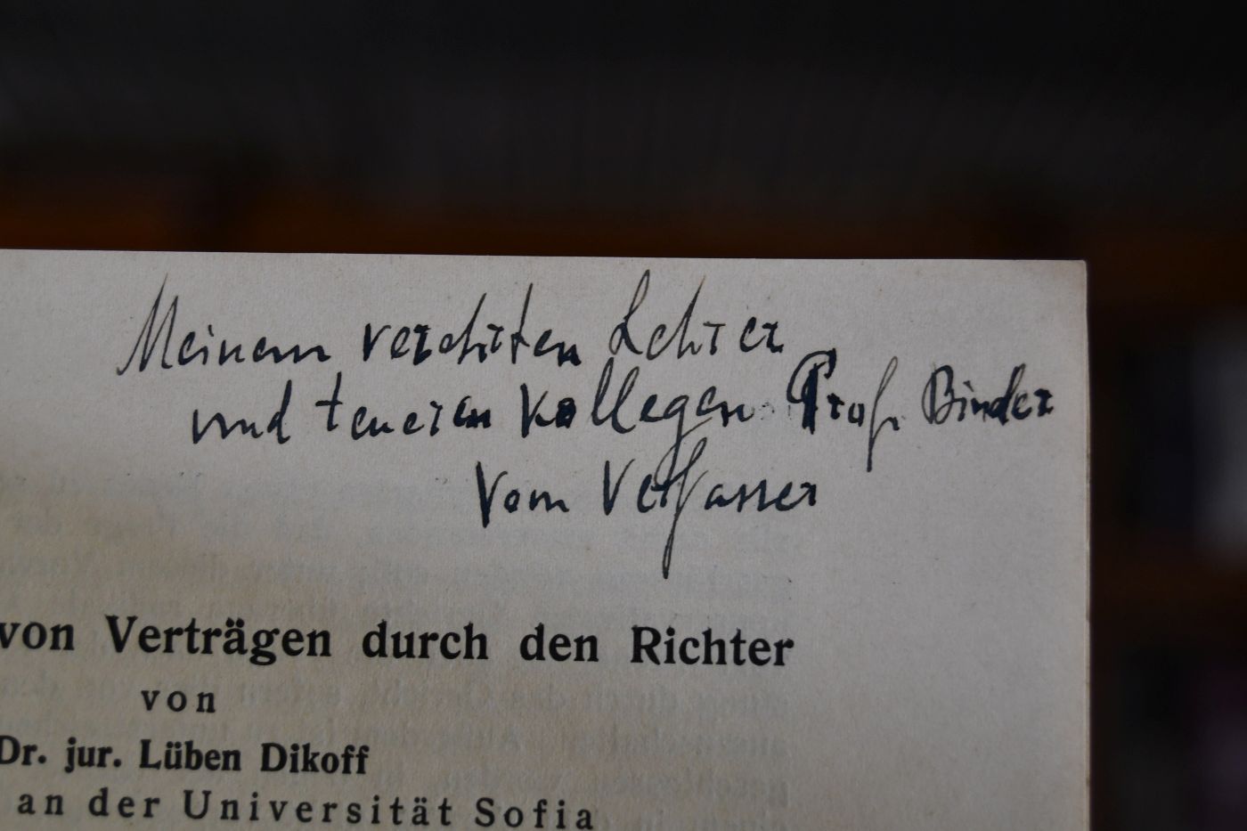 Beschreibung Einband berieben, bestoßen, angeschmutzt und fleckig. Korrodierte Heftklammern. Handschriftliche WIdmung von Lüben Dikoff an seinen 1939 verstorbenen Lehrer Julius Binder auf der ersten Textseite.
