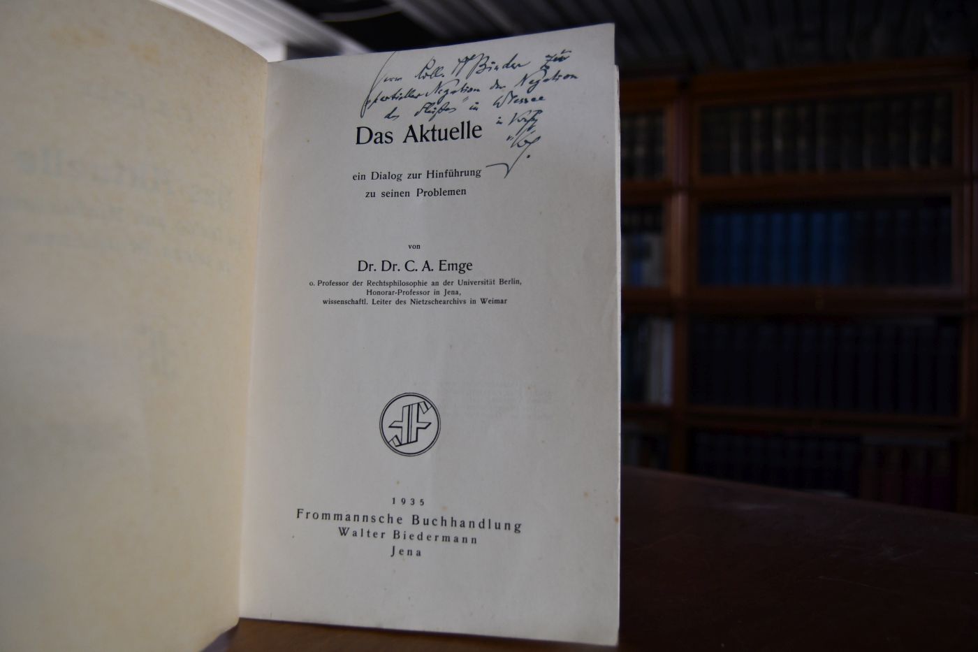 Beschreibung Einband berieben, bestoßen, angeschmutzt und fleckig. Innen durchgehend immer wieder etwas fleckig. Mit handschriftlicher Widmung (wohl an Julius Binder) von Carl August Emge auf dem Titel.