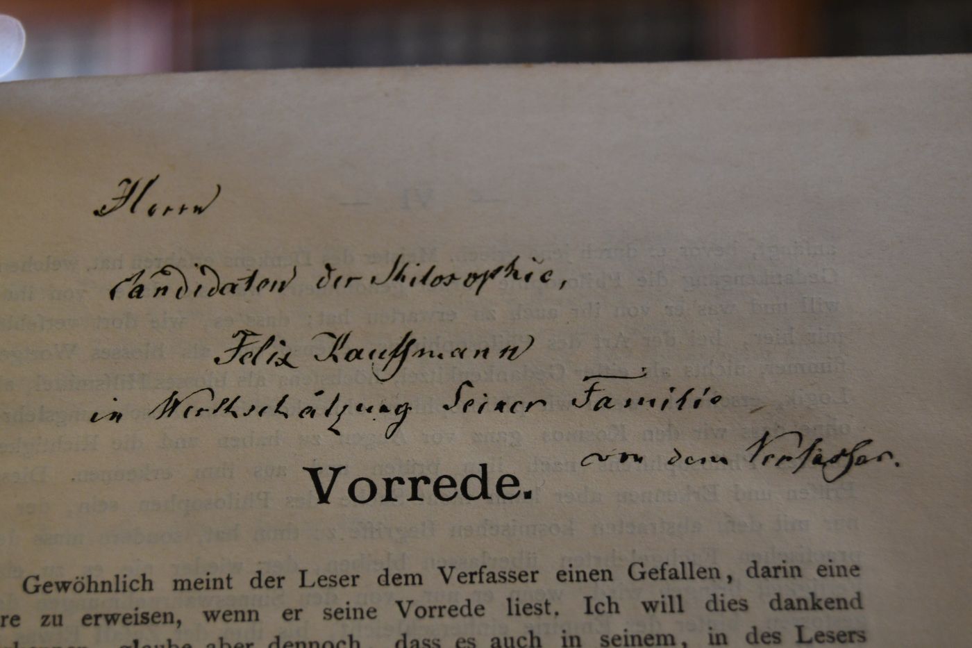 Beschreibung Einband berieben. Mit handschriftlichem Besitzereintrag (Felix Kauffmann) und Widmung (von Horst Wieland, Grab) auf dem Titel. Handschriftliche Widmung von Bernhard Fischer an Felix Kauffmann auf der Vorrede. "Bernhard Fischer auch Bernard Fischer (* 12. Januar 1821 in Budikau; † 17. Juni 1906 in Leipzig[1]) war ein böhmischer Rabbiner und Publizist." (Wikipedia)