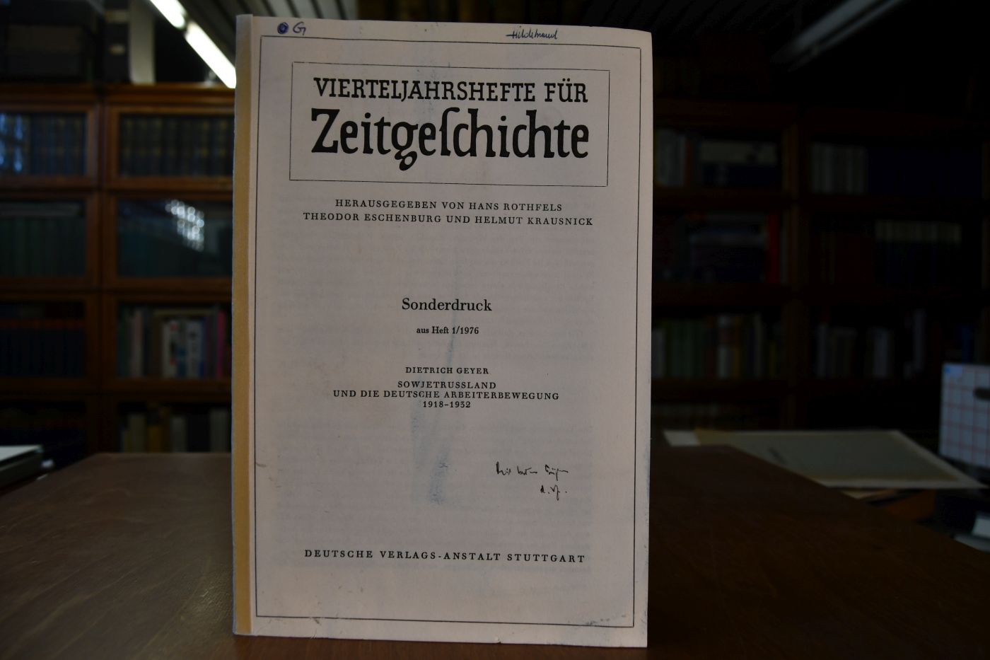 Beschreibung Berieben, bestoßen und wellig. Handschriftliche Widmung von Dietrich Geyer [an Klaus Hildebrand] auf dem Vorderdeckel.