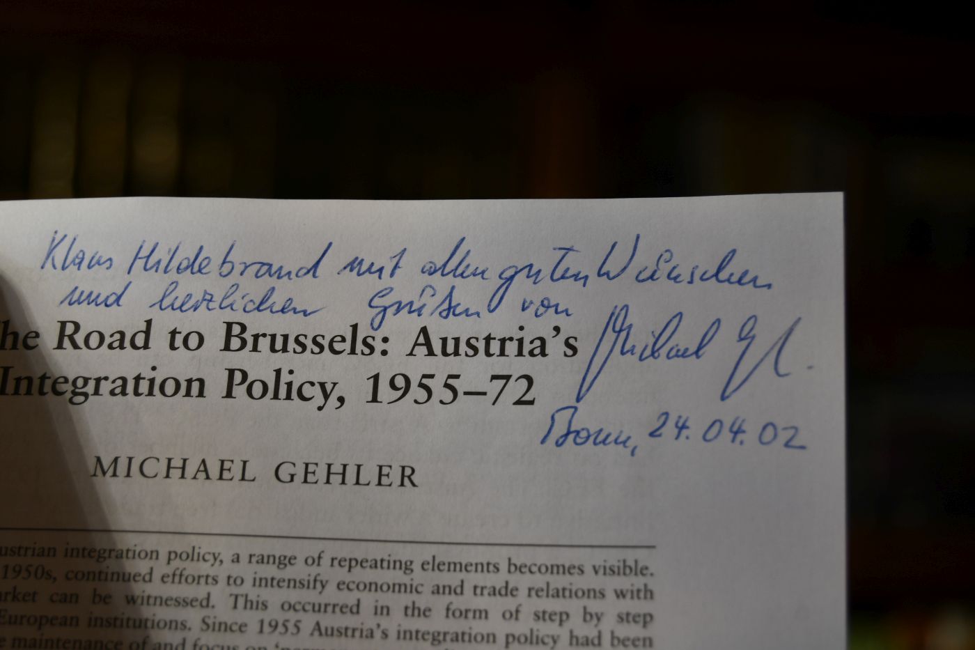 Beschreibung Berieben und bestoßen. Mit handschriftlicher Widmung von Michael Gehler an Klaus Hildebrand auf der ersten Textseite.