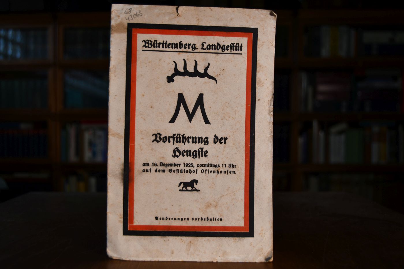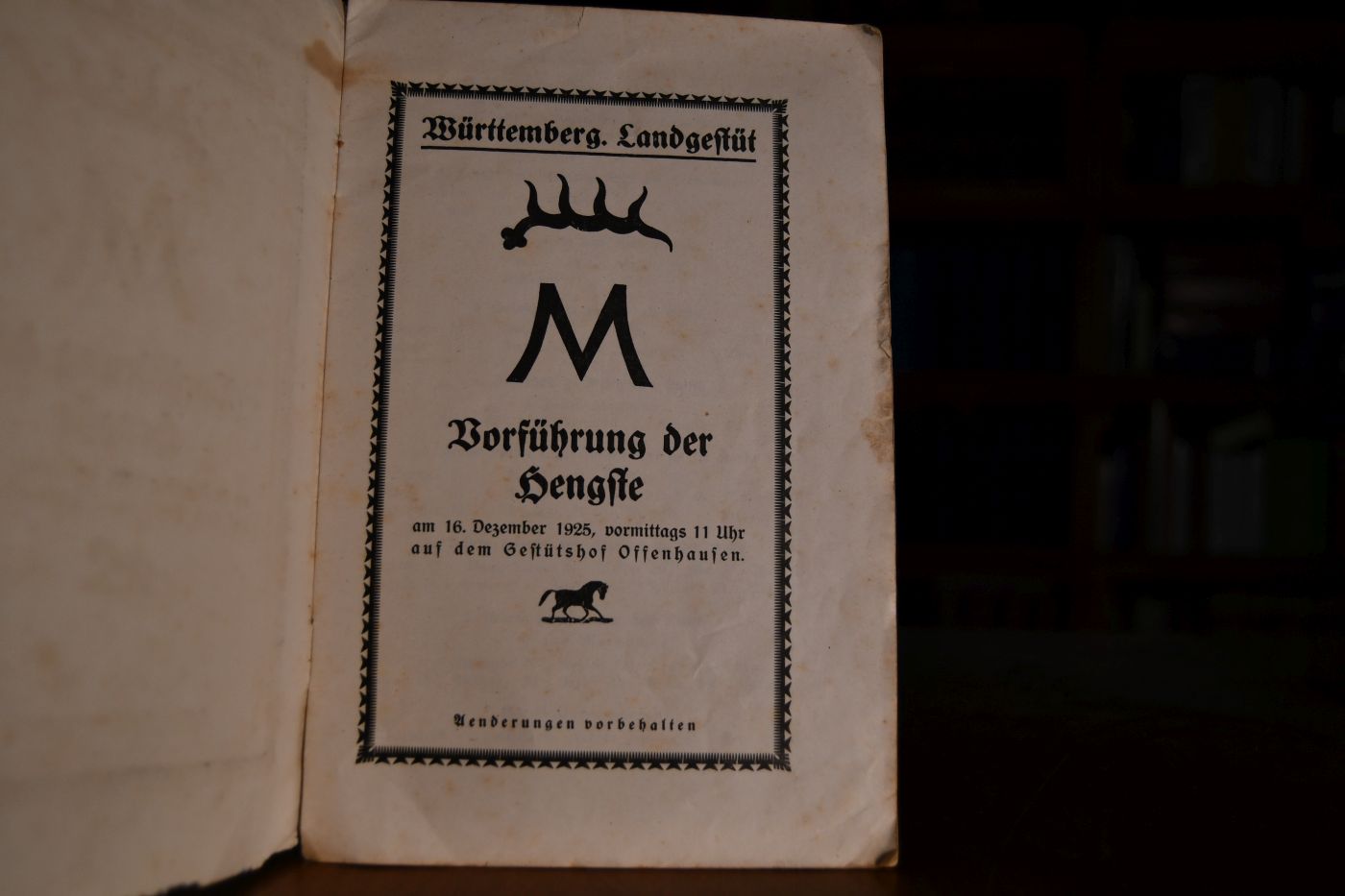 Württemberg. Landesgestüt. Vorführung der Hengste am 16. Dezember 1925, vormittags 11 Uhr auf dem Gestütshof Offenhausen.
