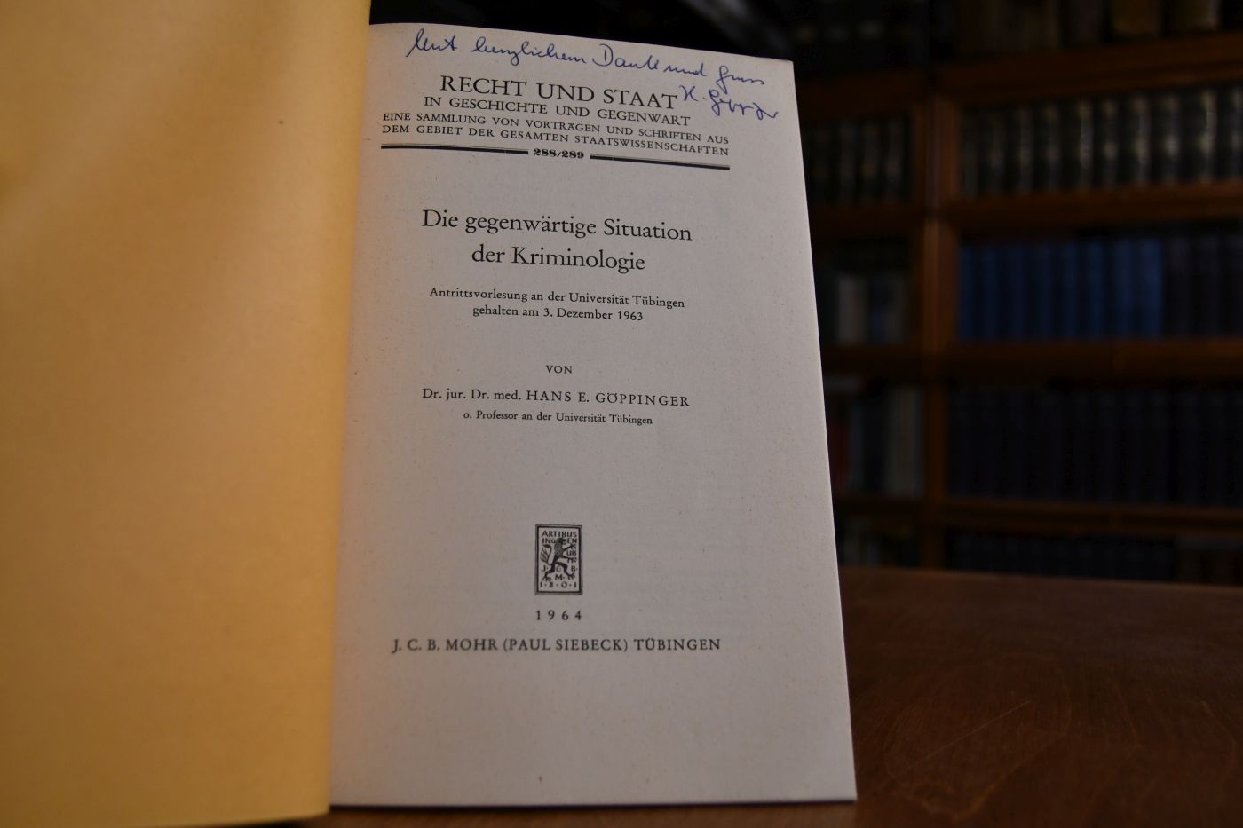 Die gegenwärtige Situation der Kriminologie. Antrittsvorlesung an der Universität Tübingen gehalten am 3. Dezember 1963.