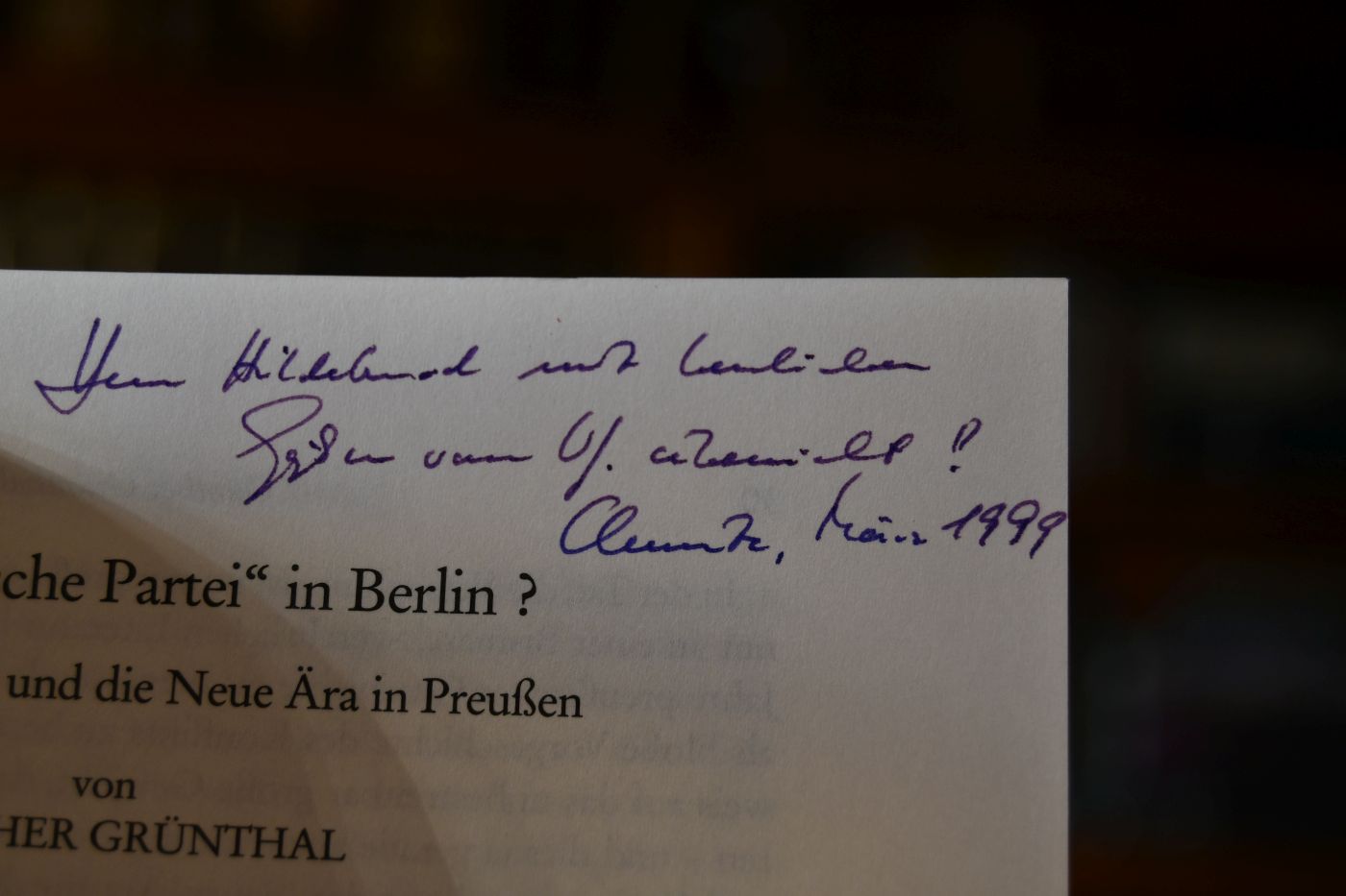 Beschreibung Berieben und bestoßen. Handschriftliche Widmung von Günther Grünthal an Klaus Hildebrand auf der ersten Textseite.
