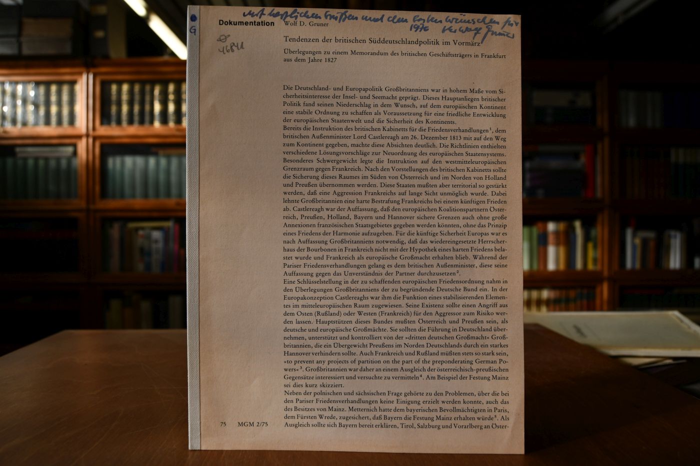 Überlegungen zu einem Memorandum des britischen Geschäftsträgers in Frankfurt aus dem Jahre 1827. Sonderdruck aus MGM 2/1975
