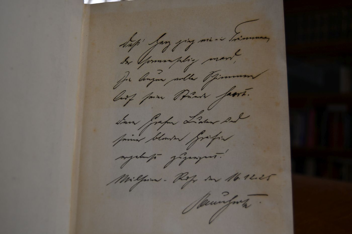 Beschreibung Einband berieben, bestoßen, fleckig und angeschmutzt. Vorsätze fleckig. Mit handschriftlicher Widmung des Verfassers vom 16.12.1925 an den Grafen Luckner und seine blonde Gräfin auf dem fliegenden Vorsatz. Beiliegend ein ausgeschnittener Zeitungsartikel mit einer Buchbesprechung.