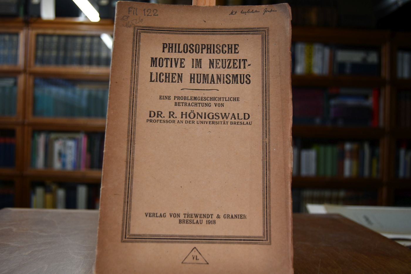 Beschreibung Einband berieben und bestoßen. Gebräunt und mit Randeinrissen. Durchgehend Bleistiftanstreichungen. Mit handschriftlicher Widmung von Richard Hönigswald auf dem Vorderdeckel.