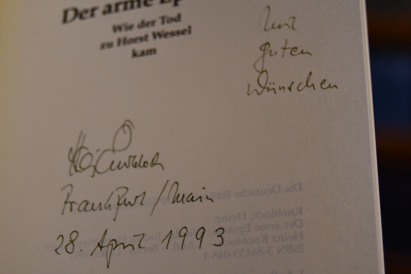 Beschreibung Einband berieben, bestoßen und angeschmutzt. Mit durchgehendem Längsfalz. Handschriftliche Widmung des Verfassers auf der ersten Textseite.