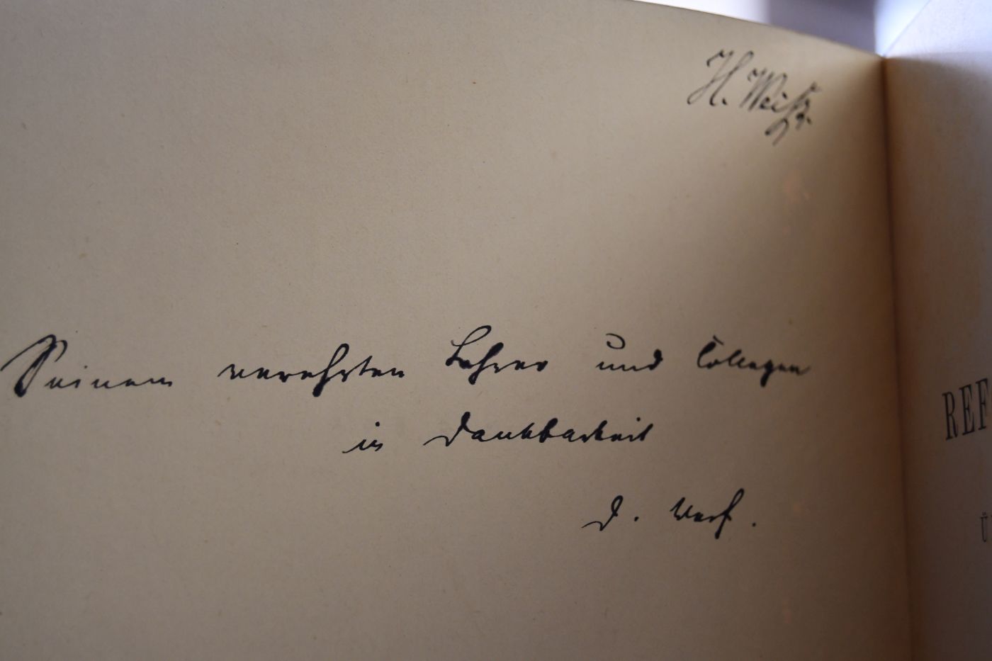 Beschreibung Schnitt fleckig. Durchgehend mit Bleistiftanstreichungen und 2 längeren Anmerkungen (wohl von Otto Kirn). Durchgehend fleckig. Mit handschriftlicher Widmung von Otto Kirn an seinen Lehrer und Kollegen auf dem fliegenden Vorsatz und einem handschriftlichen Besitzereintrag (H. Weiß?).