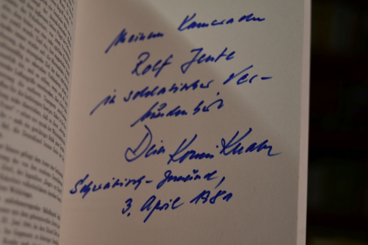 Beschreibung Einband berieben und bestoßen. Oberer Schnitt fleckig. Rücken mit Lesespuren. Mit handschriftlicher Widmung von Konrad Knabe auf dem Schmutztitel.