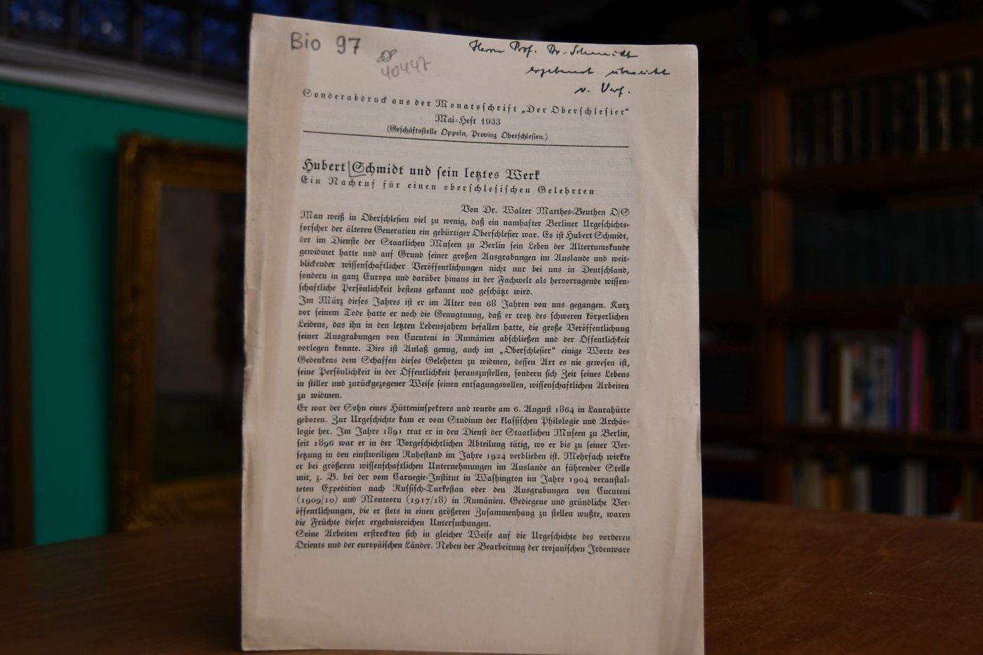 Hubert Schmidt und sein letztes Werk. Ein Nachruf für einen oberschlesischen Gelehrten.