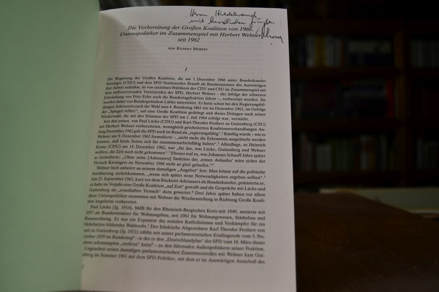 Beschreibung Einband berieben und bestoßen. Mit handschriftlicher Widmung von Rudolf Morsey an Klaus Hildebrand auf der ersten Textseite.