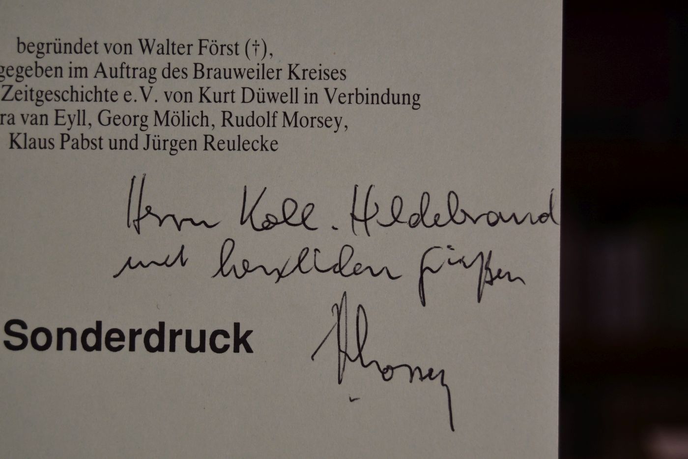 Beschreibung Einband berieben und bestoßen. Mit handschriftlicher Widmung von Rudolf Morsey an Klaus Hildebrand auf dem Vorderdeckel.