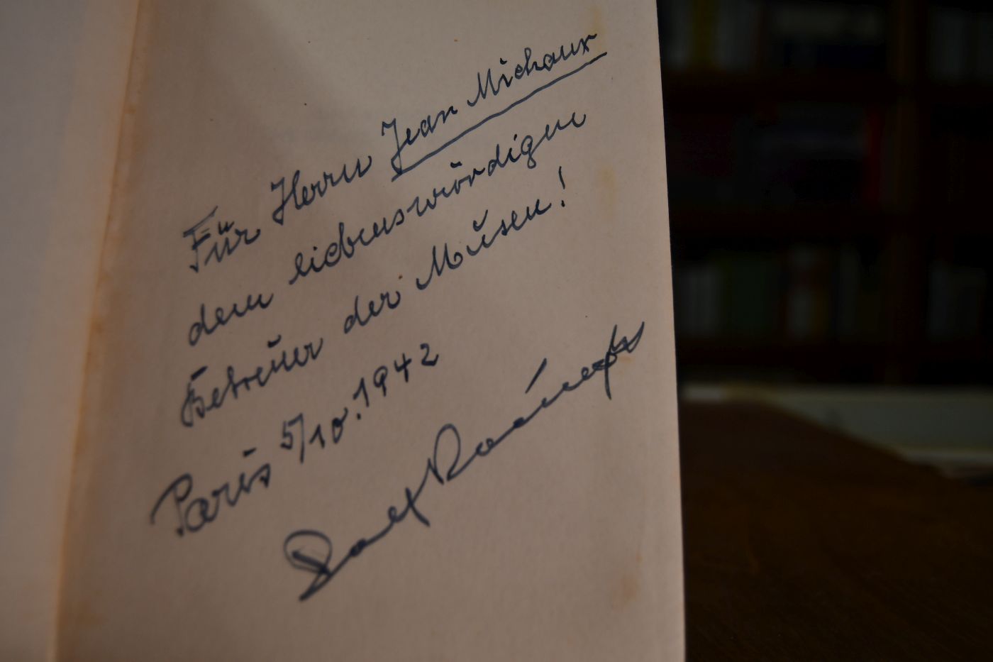 Beschreibung Einband berieben, bestoßen und gebräunt. Schnitt fleckig. Handschriftliche Widmung von Rolf Roeingh an Jean Michaux, Paris 5.10.1942 auf dem fliegenden Vorsatz. Beiliegend ein unterschriebenes maschinenschriftliches Schreiben von Rolf Roeingh an Prof. Dr. Fritz Schmidt, Oberfeldveterinär vom 27.3.1943 und der Durchschlag des zugrunde liegenden Anschreibens vom 26.3.1943.