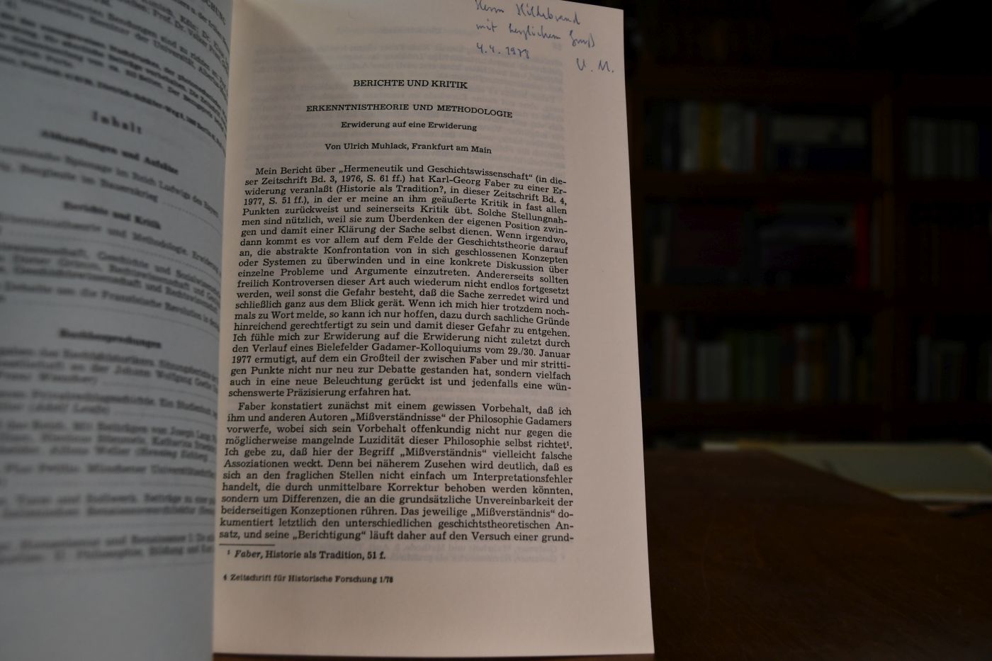 Sonderdruck aus: Zeitschrift für historische Forschung. 5. Band Heft 1.