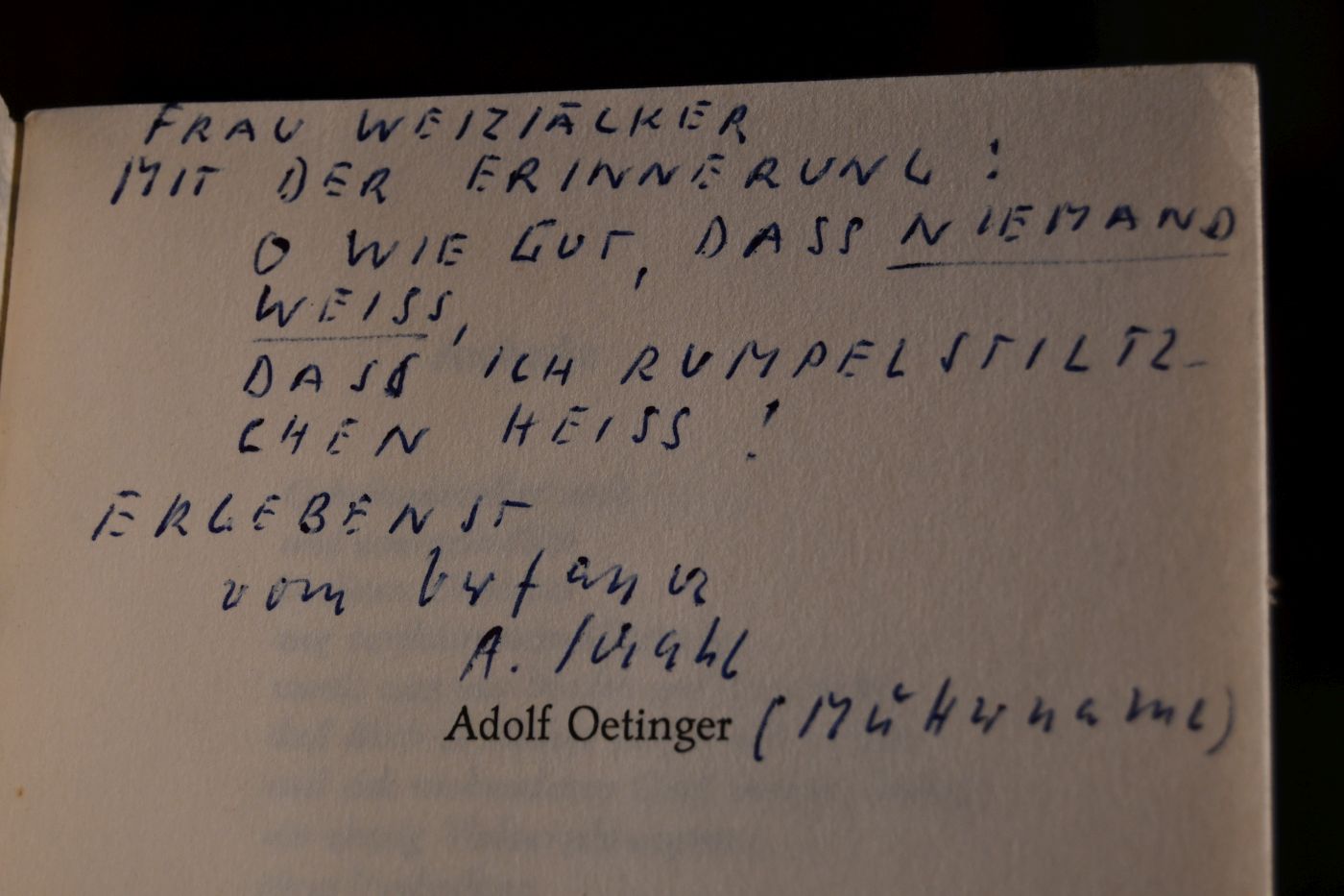 Beschreibung Einband berieben und bestoßen. Schnitt fleckig. Eselsohrig. Mit handschriftlicher Widmung von Adolf Schahl (unter Auflösung des Pseudonyms) an Frau Weizsäcker auf dem Titel.