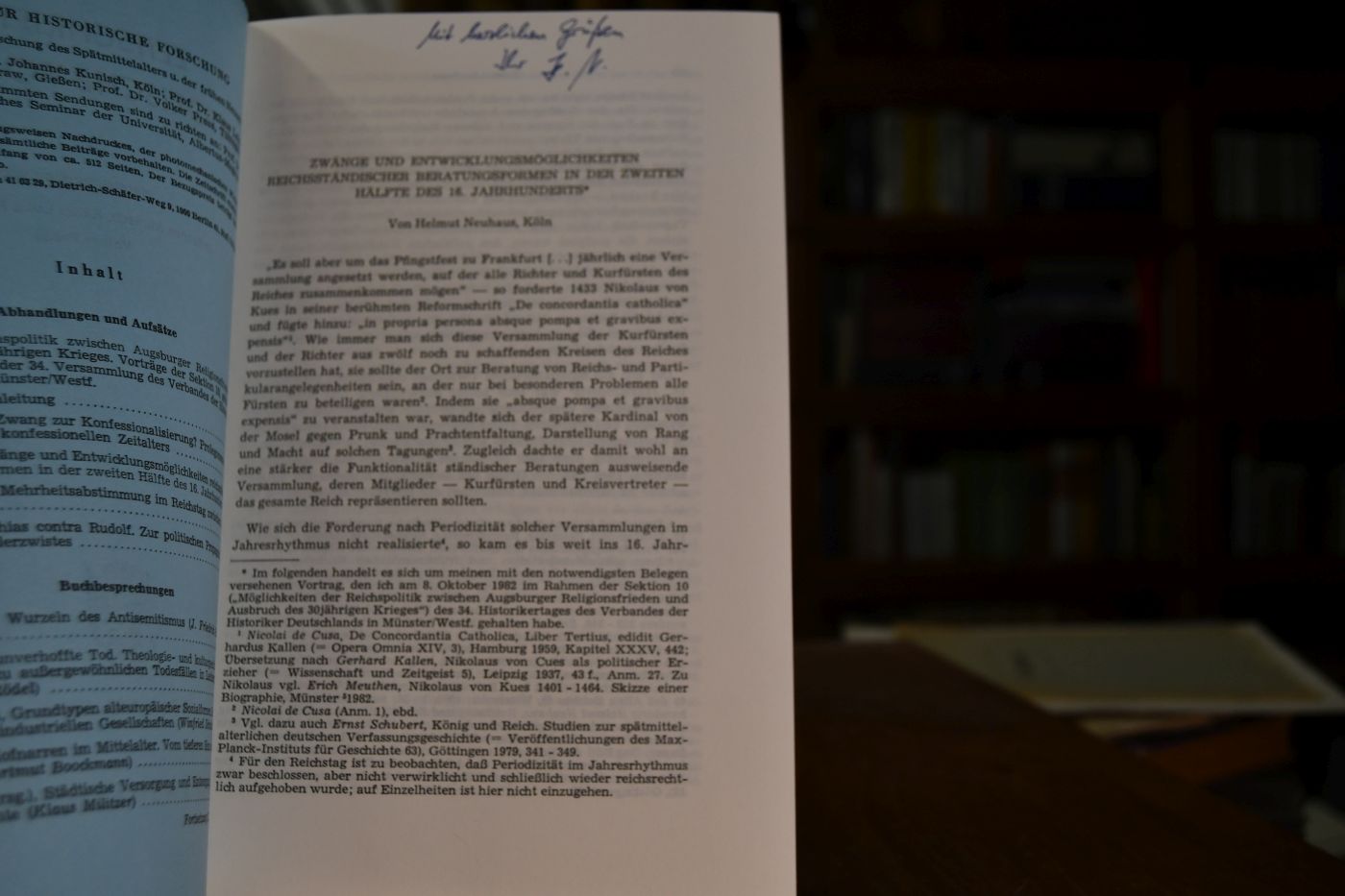 Beschreibung Einband berieben und bestoßen. Handschriftliche Widmung von Helmut Neuhaus an Klaus Hildebrand auf der ersten Textseite.