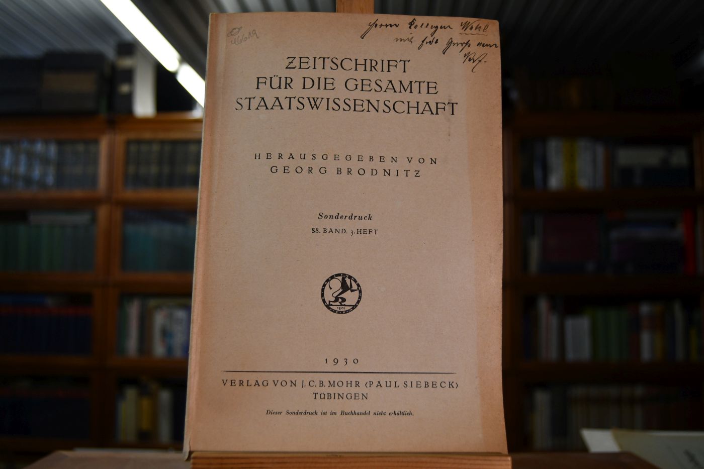 Beschreibung Einband berieben, bestoßen, gebräunt und Vorderdeckel umgeklappt. Handschriftliche Widmung von Theodor von Pistorius an [Adalbert] Wahl auf dem Vorderdeckel.