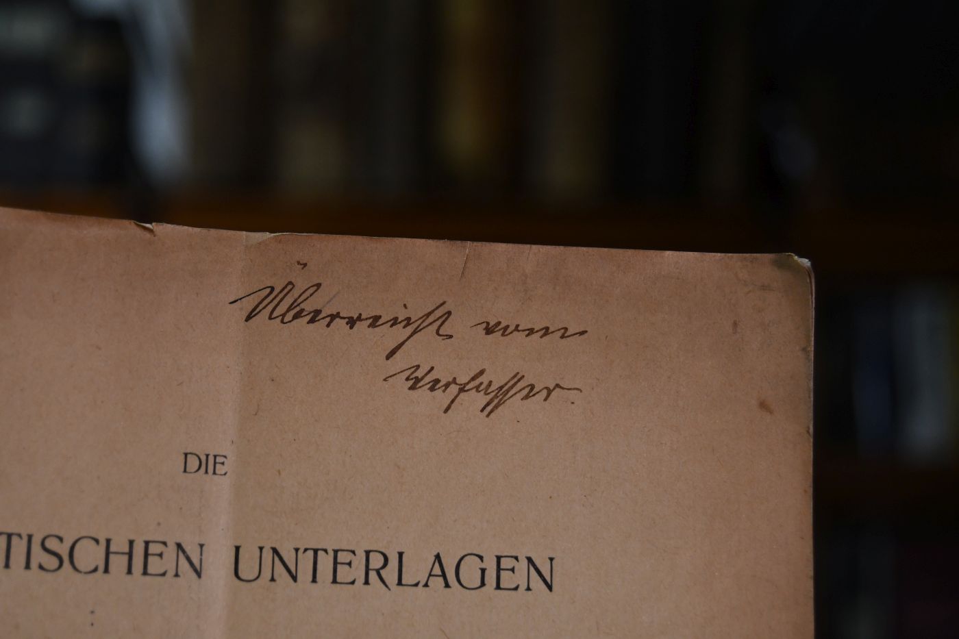 Beschreibung Einband berieben, bestoßen, lichtrandig, mit Einrissen und auf dem Rückdeckel mit ausgeschnittenem Adressaufkleber. Eselsohrig. Durchgehender Längsfalz. Mit handschriftlicher Widmung auf dem Vorderdeckel.