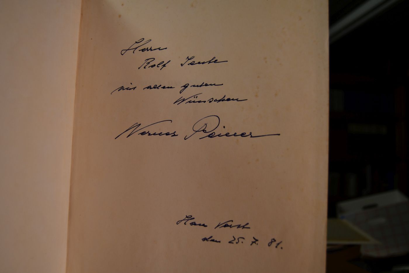 Beschreibung Einband berieben, bestoßen, fleckig und mit Einrissen. Schnitt und am Anfang sowie am Ende fleckig. Handschriftliche Widmung von Werner Peiner auf dem fliegenden Vorsatz.