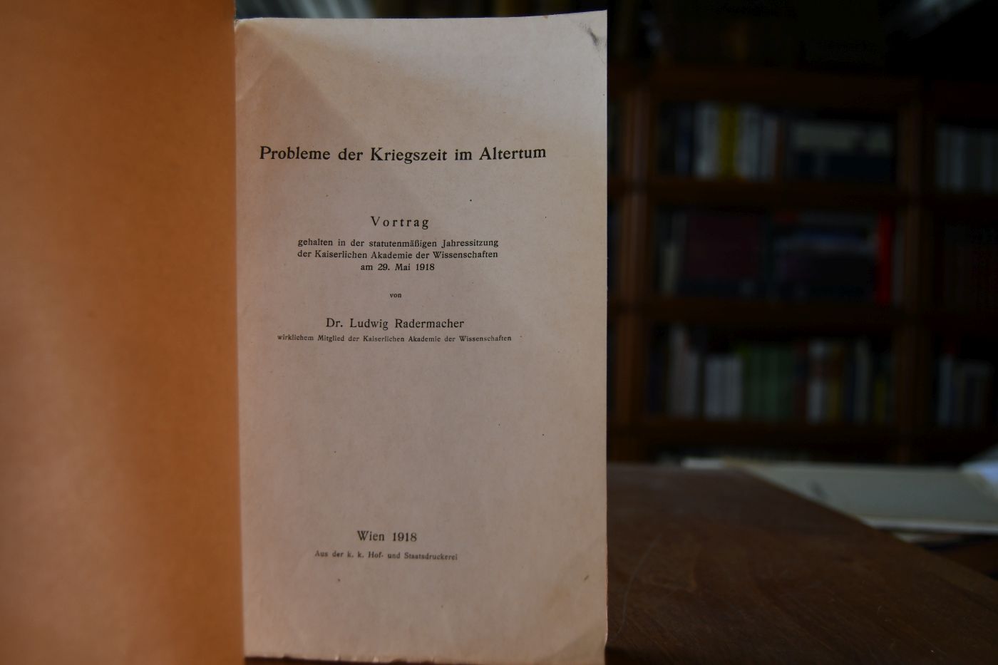 Probleme der Kriegszeit im Altertum. Vortrag gehalten in der statutenmäßigen Jahressitzung der Kaiserlichen Akademie der Wissenschaften am 29. Mai 1918.