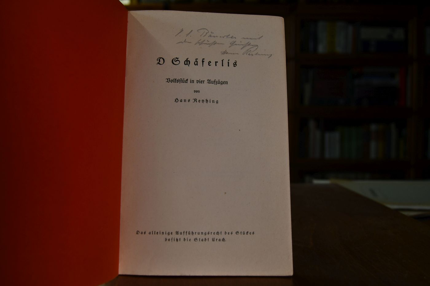 Beschreibung Einband berieben, bestoßen, angeschmutzt und ausgebleicht. Mit handschriftlicher Widmung von Hans Reyhing an seinen lieben Bäuerle (Kultusminister?) auf dem fliegenden Vorsatz.
